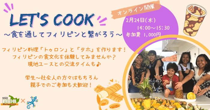 -Mary RuthさんはKPOPと中国のアーティストが好きだと言っていましたが、中国のグループと、K-POPのグループで好きなのは誰ですか? *ESL: English as a Second Language(英語以外を母国語とする人たちのための英語)の略。英語を母国語とする学生が国語として学ぶEnglishと区別するため、大学付属の非英語圏の学生を対象とした英語コースを総じてESLと呼ぶこともある。(コトバンク、https://kotobank.jp/word/ESL-430054) -Annさんは小説を書いていると言っていましたが、どのような種類の小説を書いているのですか? -今回のインタビューのメインテーマは「フィリピンの学校ランチ」についてです。 Mary Ruthさん:インターネットと実際の学校の食事と同じです。学校の食事の準備に関して、食事のメニューは、インターネットとリアルの情報は同じですね。 Annさん:私の意見だと、インターネットとリアルな情報はだいたい合っています。生徒は家からお弁当を持ってくるか、お店でお昼を買うか、学校のカフェテリアでお昼を食べます。お弁当か、学校のカフェテリアでお昼を食べるかは人それぞれですね。でも、大体の情報は同じですよ♪ ‐カフェテリアのよくあるメニューは何ですか? Annさん:私の学校のお昼のメニューもMary Ruthさんの学校のメニューと同じです。ごはん、スープ、フライドチキン、野菜、そして麺です。 ‐好きなランチのメニューは何ですか? Annさん:ごはん、フライドチキン、そして野菜のサラダです。これが私の好きな学校のお昼です(笑) ‐お昼は教室か外かカフェテリアのどこで食べますか?また、カフェテリアには他にどんな食べ物がありますか? Annさん:私は基本的にカフェテリアですね。たまに教室でお昼を食べることもありますが、多くのお昼の時間はカフェテリアにいます。友達やクラスメートやランチを作ってくれる人ともですね。 -天ぷらが好きで、学校の売店で買うことができると言っていましたが、他に日本食の食べ物は売っていますか? ‐日本の小学校では机を寄せ合わせて食事をするけど、フィリピンの小学校ではどのようなスタイルでお昼を食べますか? Annさん:私の学校でも同じですね。時々、椅子を並べてクラスメートと一緒に食べます。でも、教室で食べる場合は、いつも大きな布を持ってきて、床に敷いて、ピクニックのように食べますね♪床に座って、食べ物を全部中央に置いて、みんなでシェアします。教室でピクニックをしているようです。学校で昼食をとる場合は、たいていそうします ! -それは楽しそうですね! Annさん:私の学校には学校用品のお店があり、紙袋や鉛筆など学校で使う便利なものを売っています。また、私たちの学校にはキオスクもあり、様々な種類の食べ物を選ぶことができるので、Mary Ruthさんの学校と似ていますね。 -そうなのですね!では、次の質問です。 -では、最後の質問です。将来の夢は何ですか? Annさん:私の場合、まず卒業後の夢は、学位取得後、ジャーナリズムか放送を中心としたメディア企業で働くことです。また、退職する前に世界中を旅行するのが夢です。そして、将来はリポーターとして成功するのが夢です。 Annさん:皆さん、本当にありがとうございます。 フィリピンの若者たちに対する皆様のご支援に、私たちはとても嬉しく思っています。皆様から頂いたご支援、そして愛、フィリピンの若者たちに与えたすべてのものに深く感謝しています。 ================================================== そして、2月24日(木)14:00~15:30より、「【料理体験】Let's Cook!〜食を通してフィリピンと繋がろう〜」を開催します👏 詳細はこちらから ================================================== 詳細はこちらから 合わせて、実際に活動している学生インターンのリアルな声をお届けするオンライン報告会を実施します♪ ぜひ、こちらも参加してみてくださいね🙌 ***************** ▼LOOB JAPAN公式SNS▼ ▼LOOB JAPANインターンSNS▼ SNSでも情報発信しています!いいね👍お願いします!